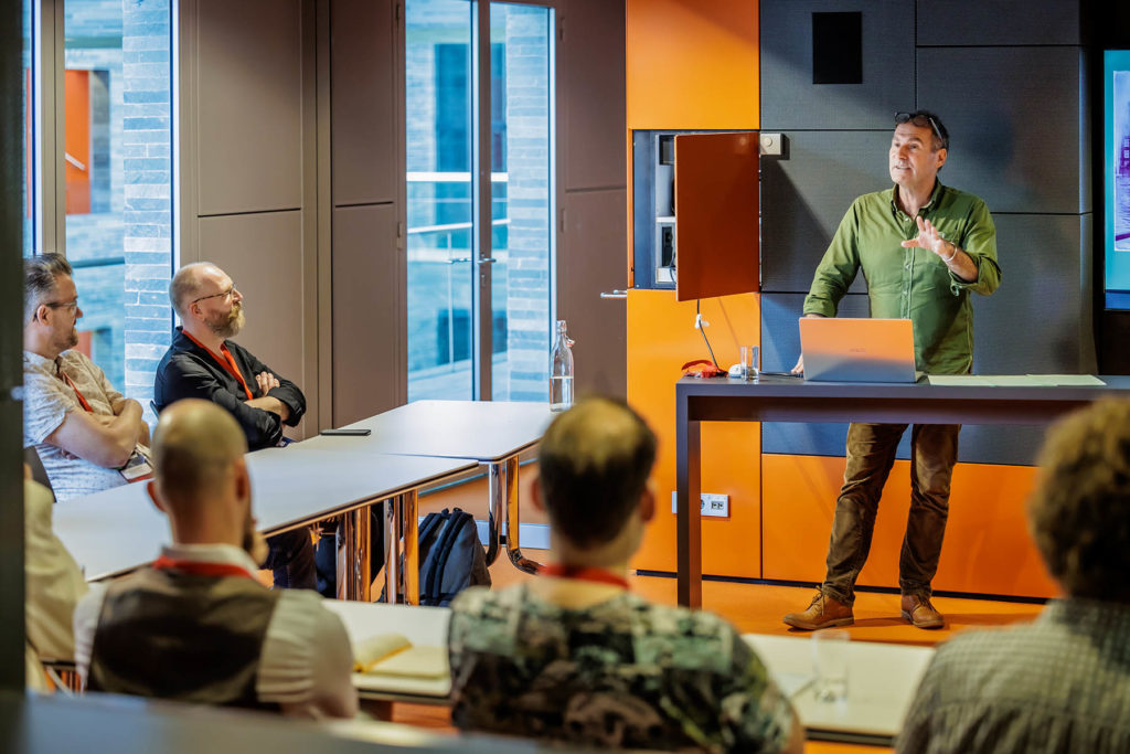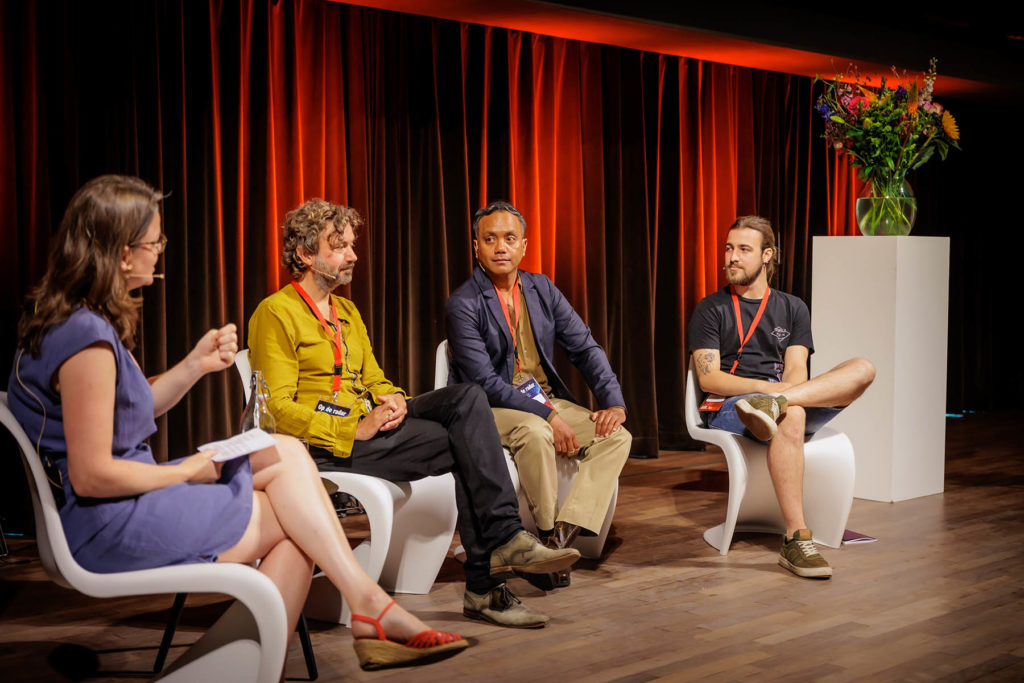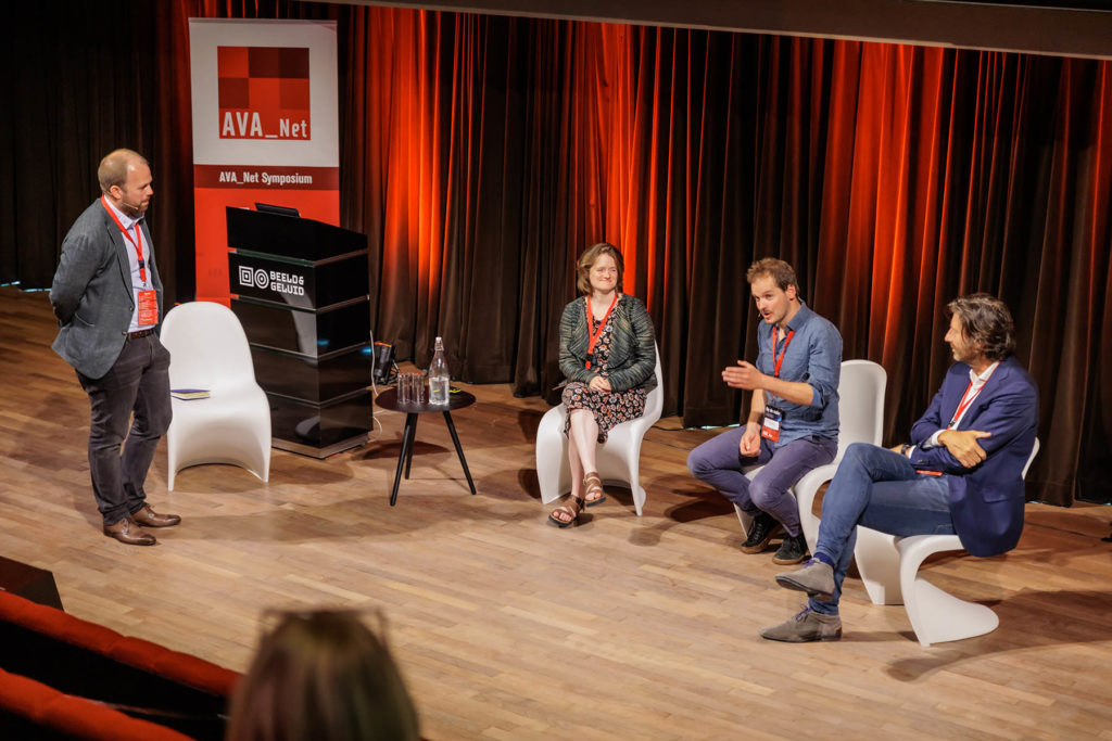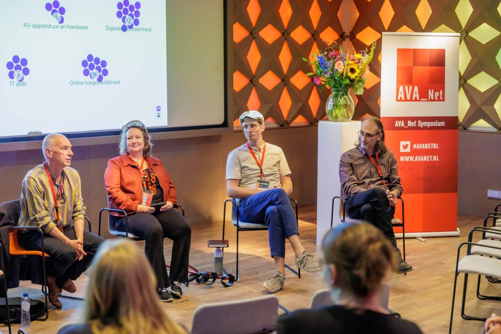 Keuzesessie 'AV-erfgoed als bron voor samenwerking en versterking' met Arnoud Goos (Beeld & Geluid), Rick Companje (Het Utrechts Archief), Carola van Dijk (Gelders Archief) en Jan Müller (RPO).
