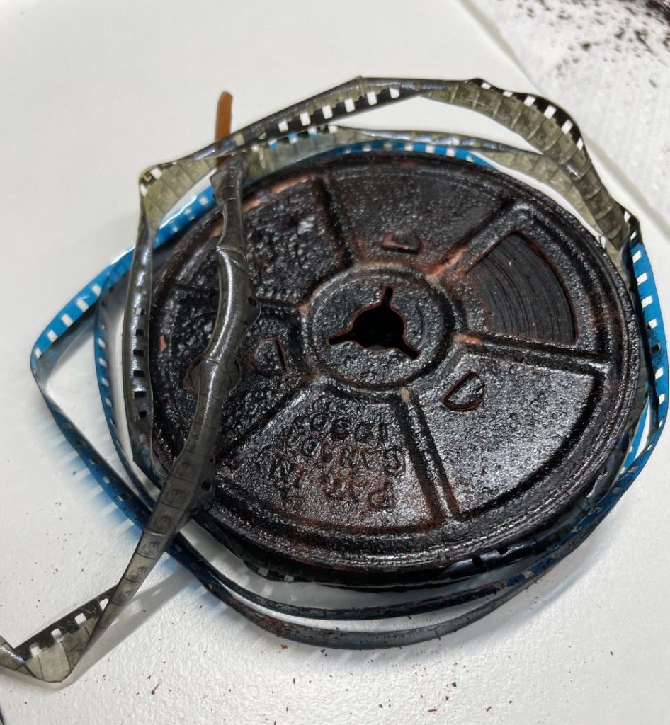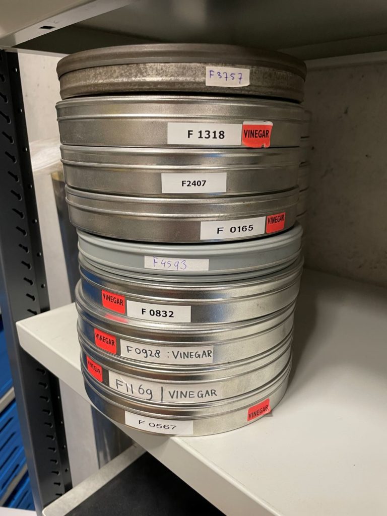 Zoals wel vaker is een verhuizing de reden om oude spullen weg te gooien. De Groninger Archieven gingen verbouwen in de periode 2023-2024 en we moesten eens goed gaan kijken naar wat we wilden bewaren en wat weg kon. Je verwacht niet dat je dan ook iets moet beslissen over een deel van de collectie, maar dat was wel het geval: een aantal van onze films was namelijk aangetast door het vinegar syndrome.