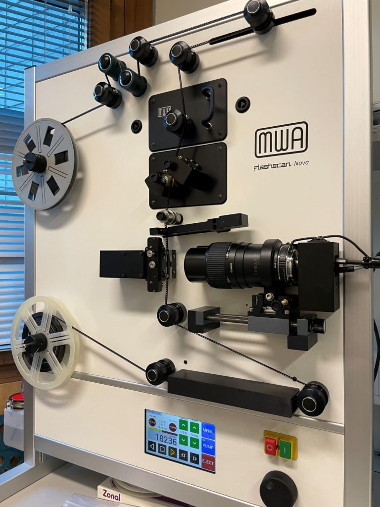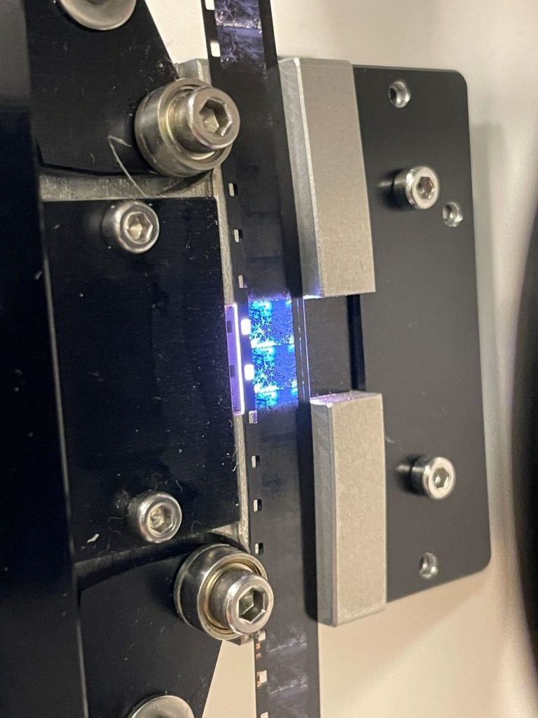 Het zou mooi zijn als je een archiefkopie kunt maken op film, maar dat is inmiddels erg prijzig en tijdrovend. Bovendien heeft de techniek niet stil gestaan en hebben we bij de Groninger Archieven al enige tijd een fantastische 4K filmscanner. Met deze scanner kunnen we film als DPX sequentie digitaliseren. Een 8mm beeldje wordt dan ongecomprimeerd opgeslagen. Elk beeldje heeft 4000×3000 pixels, een bestand van 70MB. Normaliter scannen we niet elke film op deze manier, meestal is het eindresultaat meteen een ProRes HQ bestand in 4K resolutie. Dat is heel fijn, maar niet goed genoeg om een origineel te vervangen. DPX sequenties zijn dat wel, hebben we besloten.